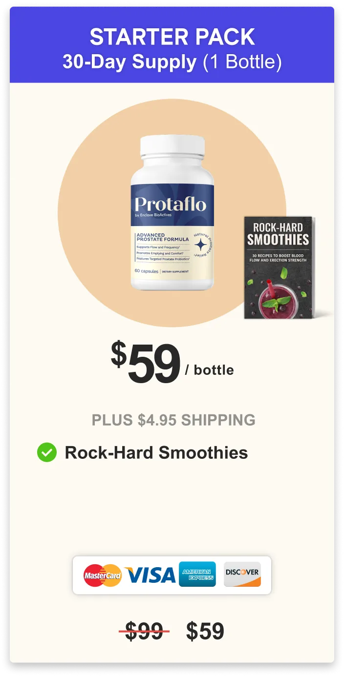 Protaflo’s primal 5 probiotic blend and natural anti-inflammatories—shrink the swelling, freeing up blood flow. Studies in the scientific journal “Andrologica” show Protaflo’s ingredients like urtica dioica even boost testosterone naturally. Within weeks, men report stronger, longer-lasting erections and powerful sex drive.
